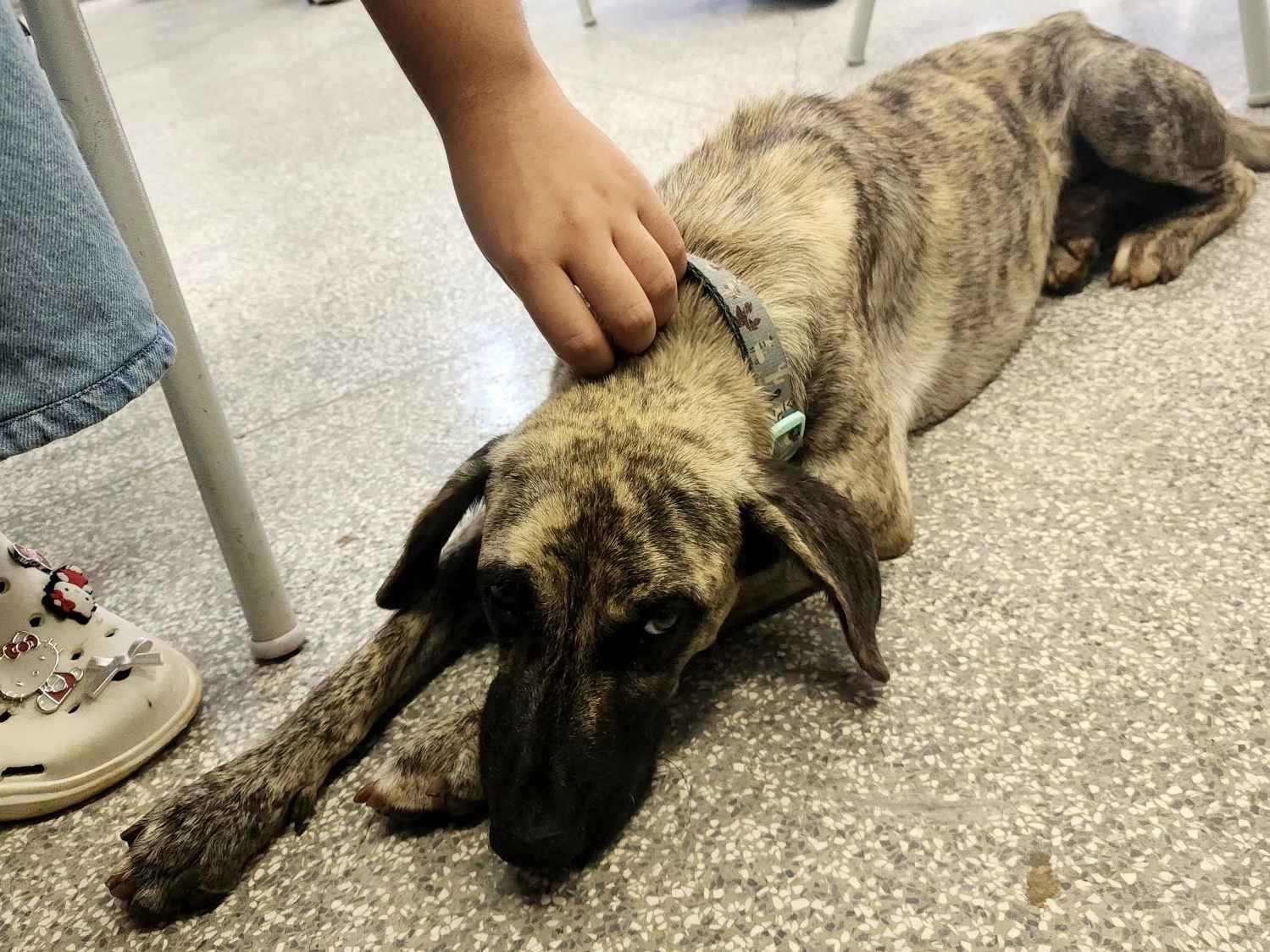 Cão macho encontrado, sem nome, da raça SRD-Vira-Lata. Ele apresenta pelagem rajada e tem entre 7 a 11 meses de idade, com porte médio. Este cãozinho é muito especial e precisa de cuidados adicionais. Seu temperamento é dócil, calmo e brincalhão, o que o torna uma companhia perfeita para quem busca um amigo leal. Ele é sociável e se dá bem com gatos, cachorros, crianças, desconhecidos e idosos, tornando-o adaptável a diversos ambientes. Vive bem em casas com quintal, onde pode brincar e explorar. Se você está disposto a oferecer um lar cheio de carinho e atenção, esse cão pode ser o companheiro ideal para você e sua família.