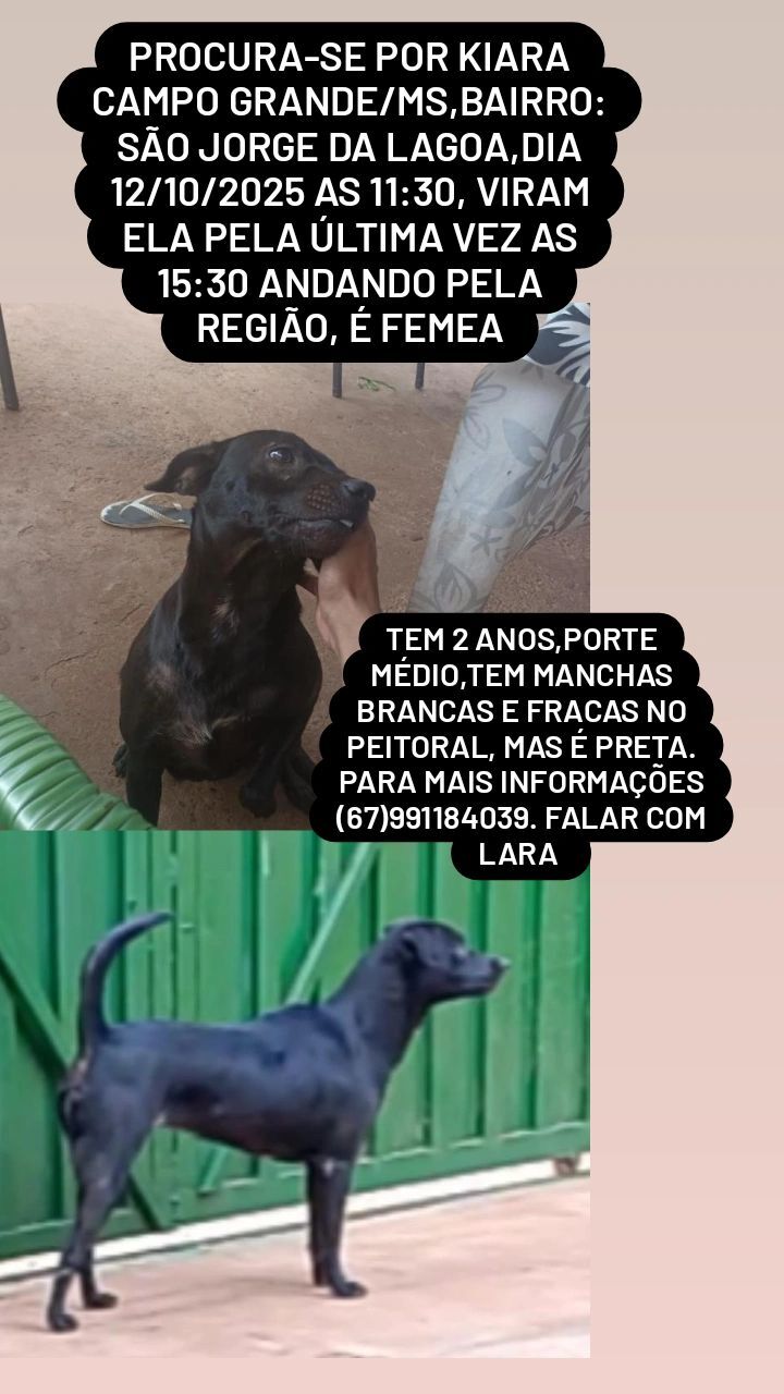 Ela se atende por Kiara,tem manchas brancas e fracas no peitoral
